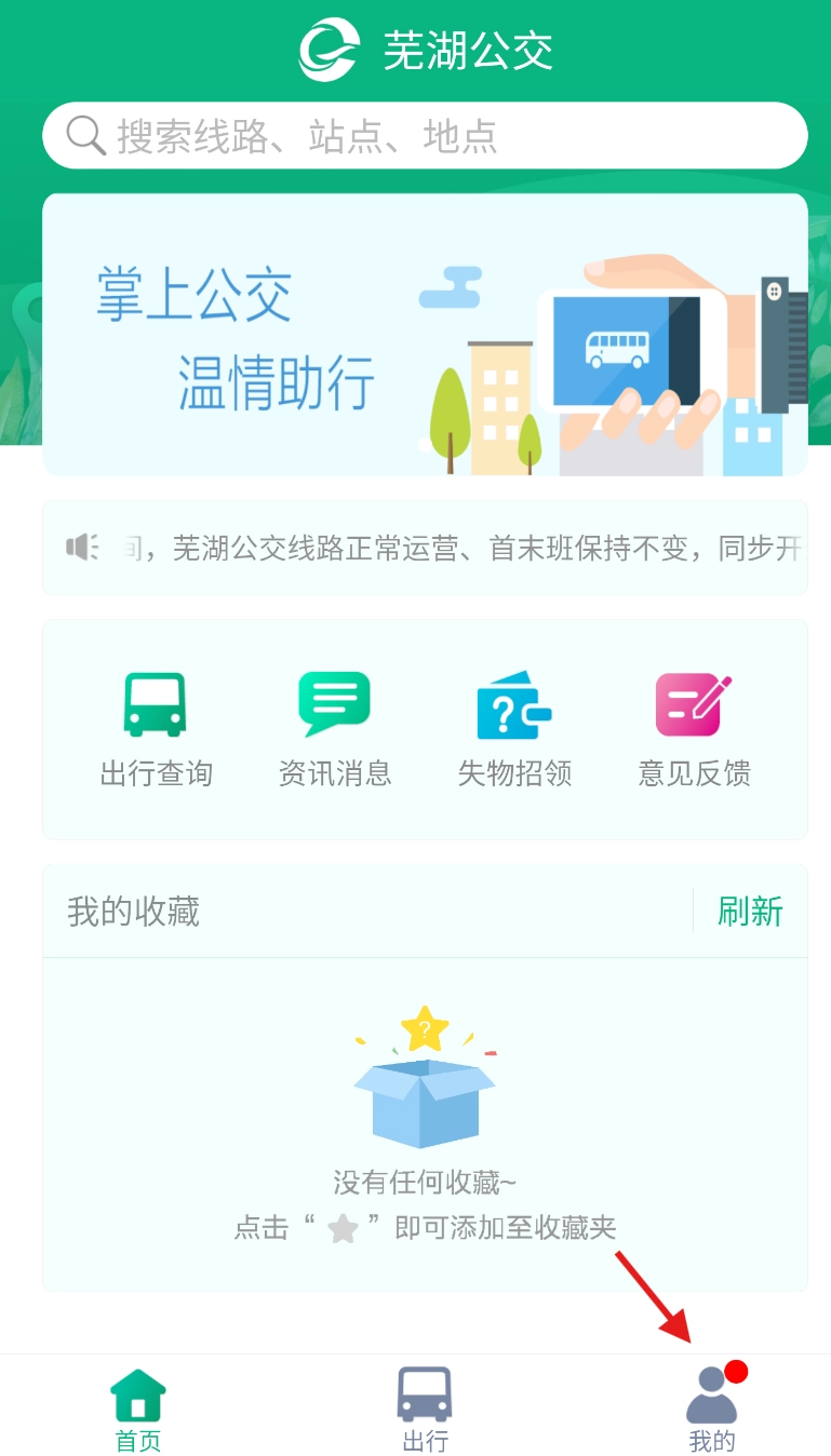 打开芜湖公交应用后,在界面底部找到“我的”选项,点击该选项即可进入个人管理页面。