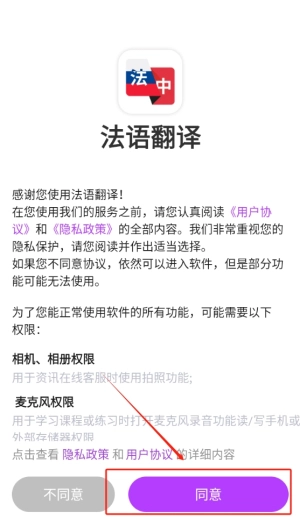 点击同意按钮,即可顺利进入应用程序,开启你的学习与翻译之旅。