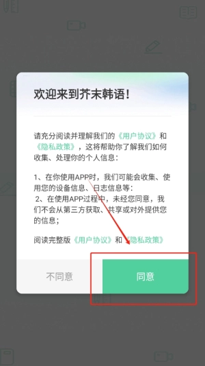 点击同意并进入应用,快速完成注册流程,就能顺利开启学习之旅啦。