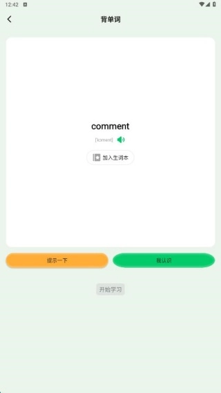 点击“开始背诵”按钮,即可进入每日记忆板块,进而了解单词的相关信息。