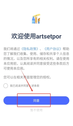 点击同意按钮后成功进入应用,界面设计简洁清晰,方便开展后续操作,即将开启学习之旅。