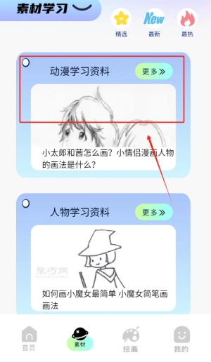 素材学习功能覆盖动漫、植物等各类题材,用户可在软件中开展多元风格的学习,助力提升综合绘画能力。