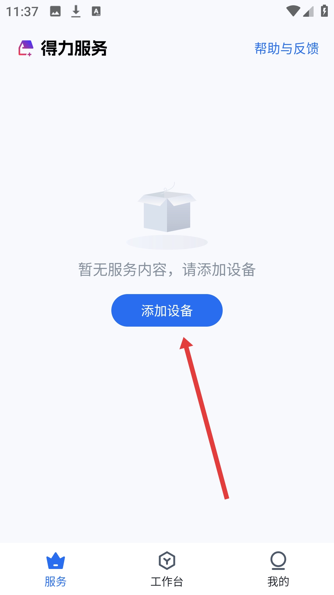 在服务页面点击【添加设备】,进入添加设备页面。