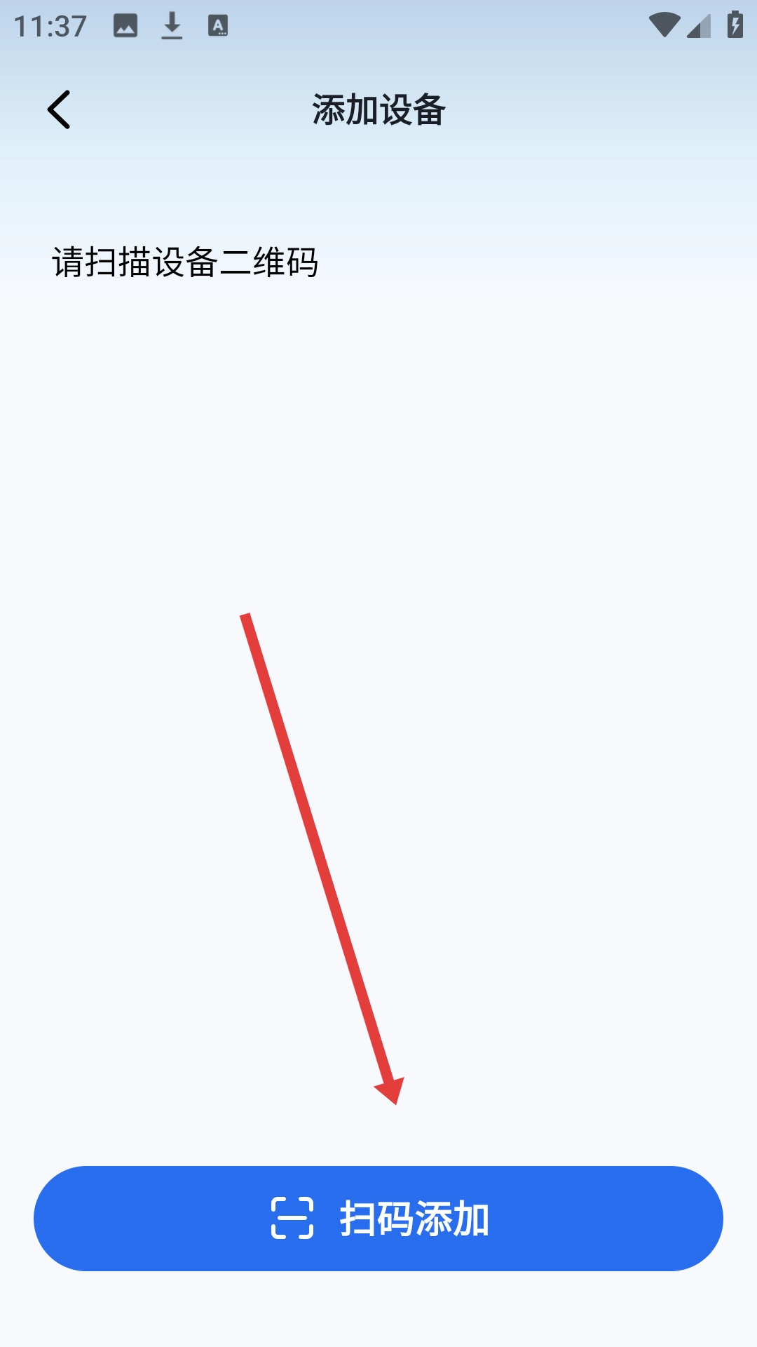 在添加设备的操作页面中,点击【扫码添加】按钮,随后扫描设备上的二维码,就能完成设备添加了。