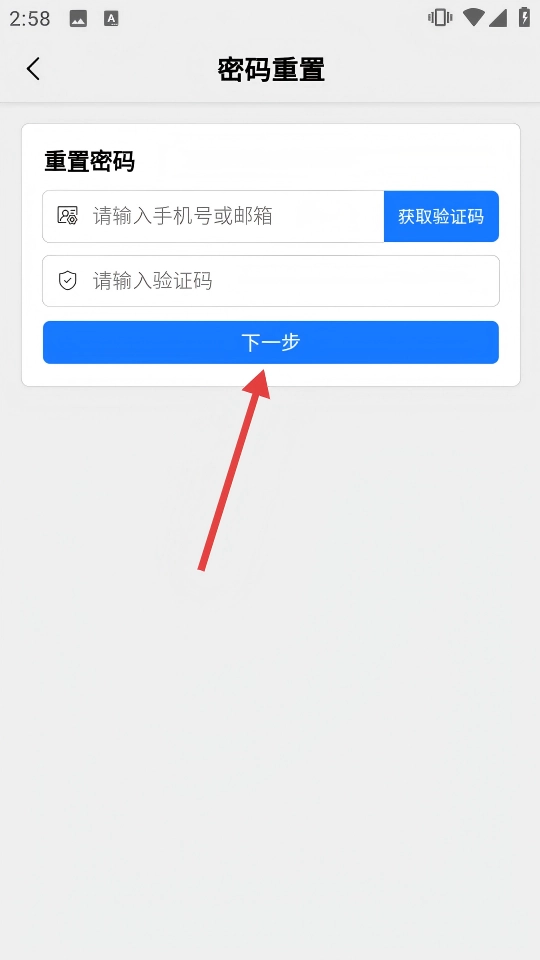 在密码重置页面,输入手机号或邮箱,点击【获取验证码】,输入收到的验证码后,点击【下一步】按钮,即可完成密码重置操作。