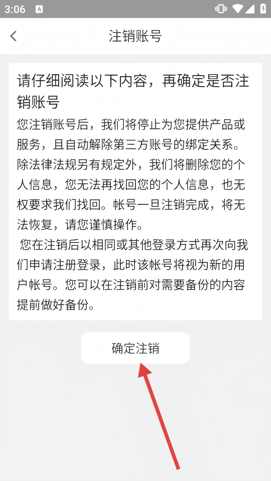 在账号注销说明页面,仔细阅读相关内容后,点击【确定注销】按钮,即可完成账号注销操作。
