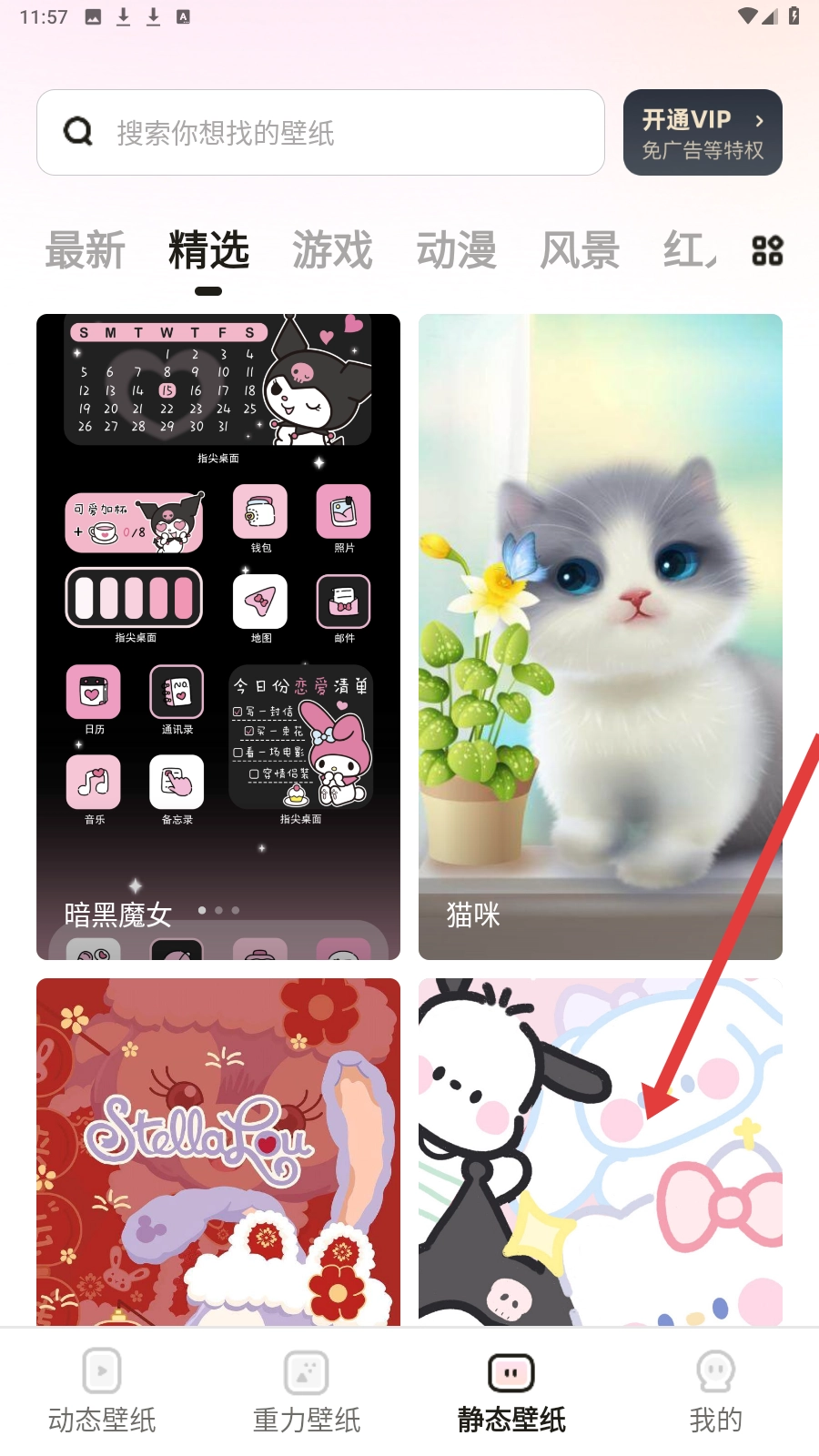 在皮皮桌面壁纸的首页,点击【静态壁纸】选项就能浏览静态壁纸相关资源。