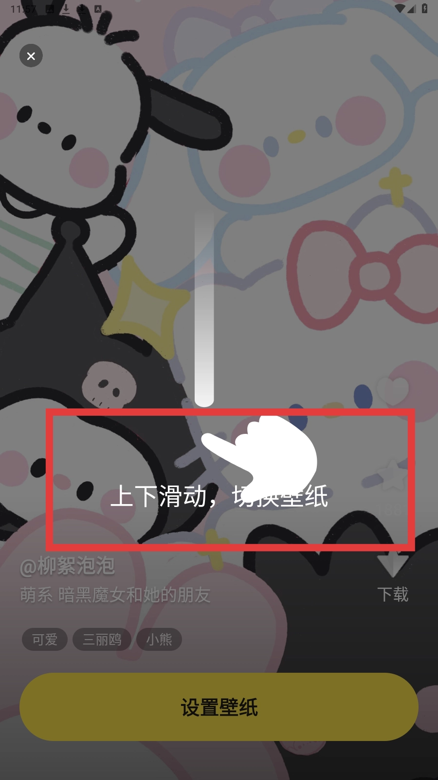 预览界面可上下滑动切换壁纸,查看不同款式效果。