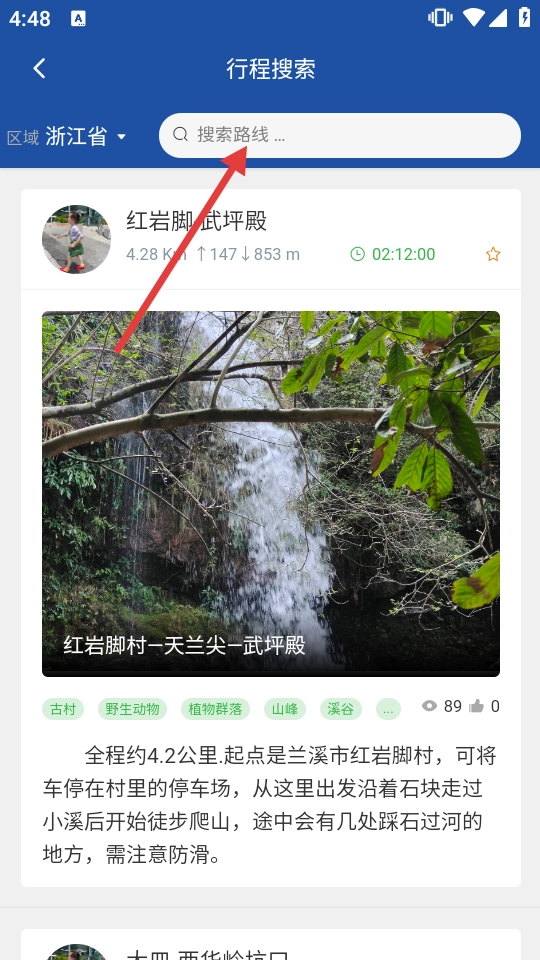 在行程搜索页面的顶部找到搜索框并点击,接着输入您希望查询的路线信息。