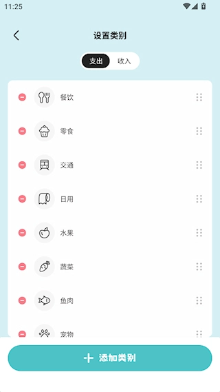 点击右上角的编辑按钮,可实现添加自定义类别、删除已有类别以及调整类别顺序的操作。