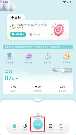 打开记账猪,点击+开始记账