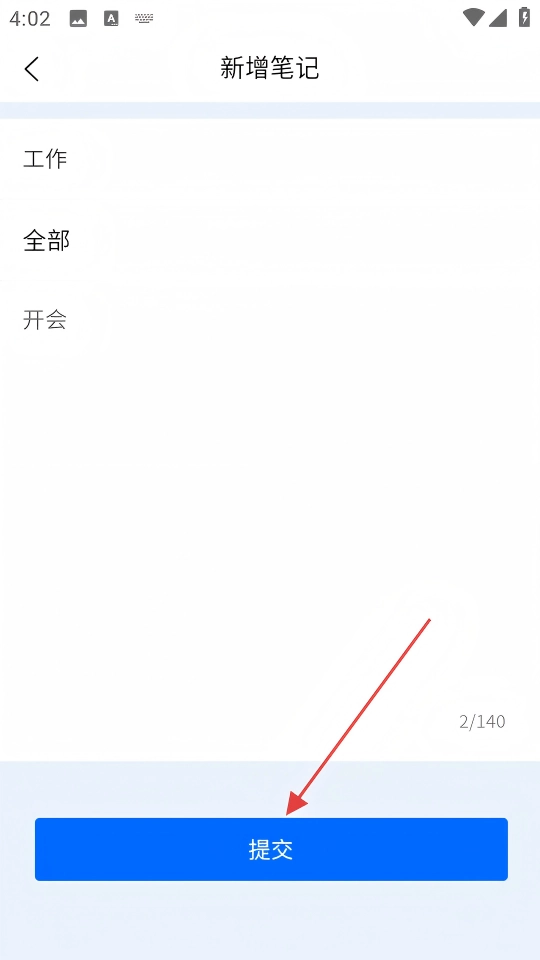 在新建笔记页面输入内容后,点击【提交】按钮即可完成笔记的创建。