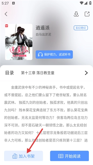 在书籍详情页面,点击【加入书架】按钮,就能把这本书添加到个人书架中。