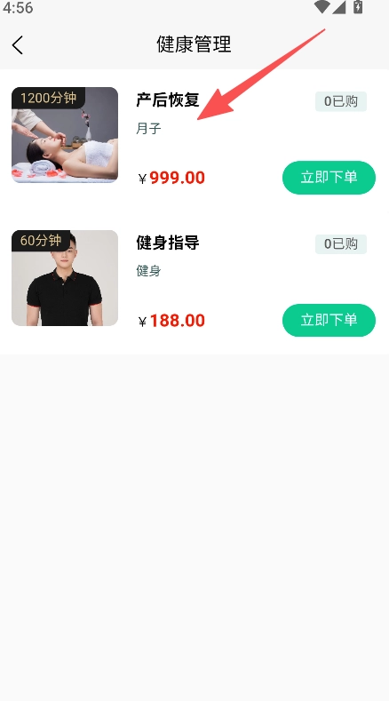 进入健康管理板块,选择产后恢复项目。
