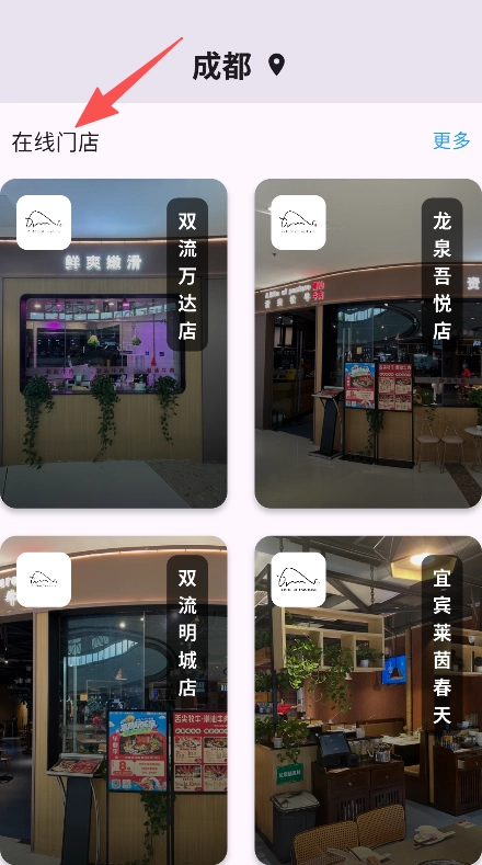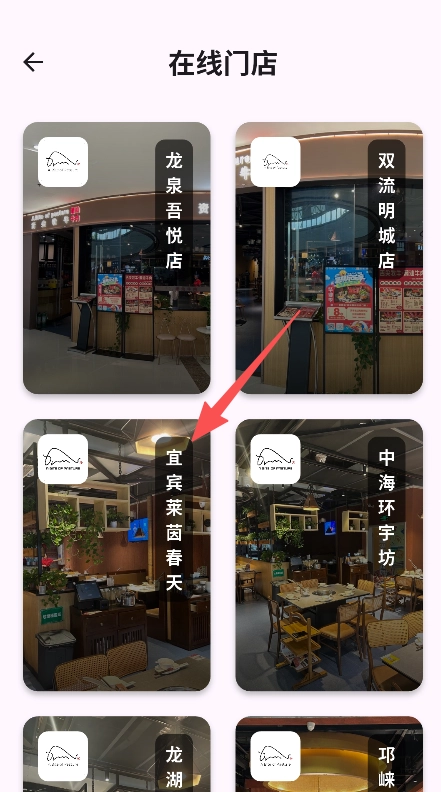 在线门店的信息呈现直观明了,每家门店的图片和名称都清晰展示,食客能迅速识别出自己的目标门店。