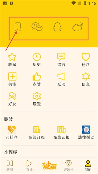 在个人中心页面,挑选登录方式,例如点击手机图标,开启登录流程。