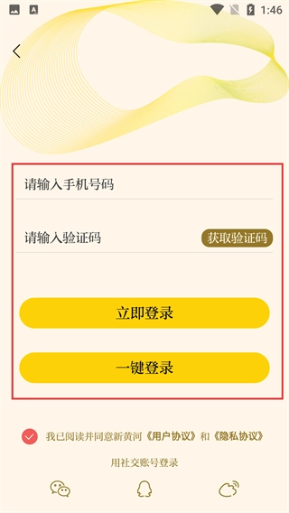 在登录界面,先填写手机号码,接着点击“获取验证码”按钮,输入收到的验证码后,就可以选择“立即登录”或者“一键登录”这两个选项来完成登录操作。
