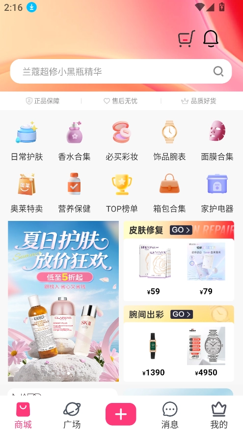 支持海量正品美妆商品的浏览与购买,覆盖全品类健康生活消费场景。