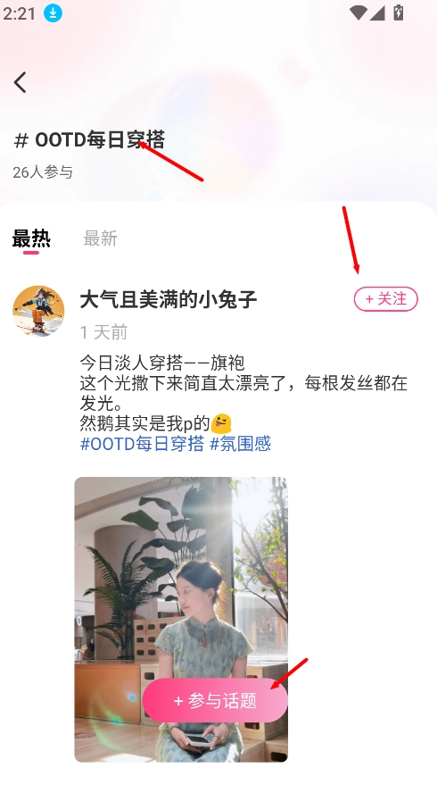 打开“每日穿搭”板块,既能参与热门话题的互动,也能关注感兴趣的博主,从中获取穿搭灵感和搭配建议。