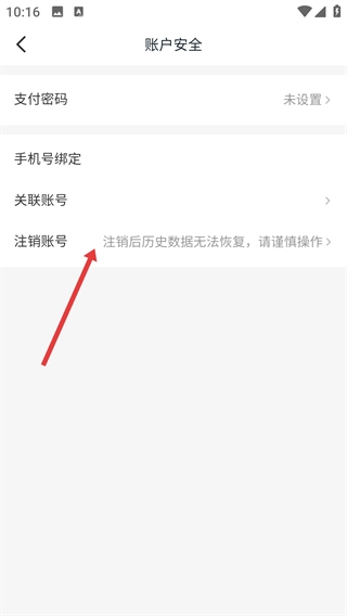 进入【账户安全】页面后,点击【注销账号】选项,需要注意的是,账号注销后历史数据将无法恢复。