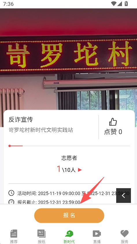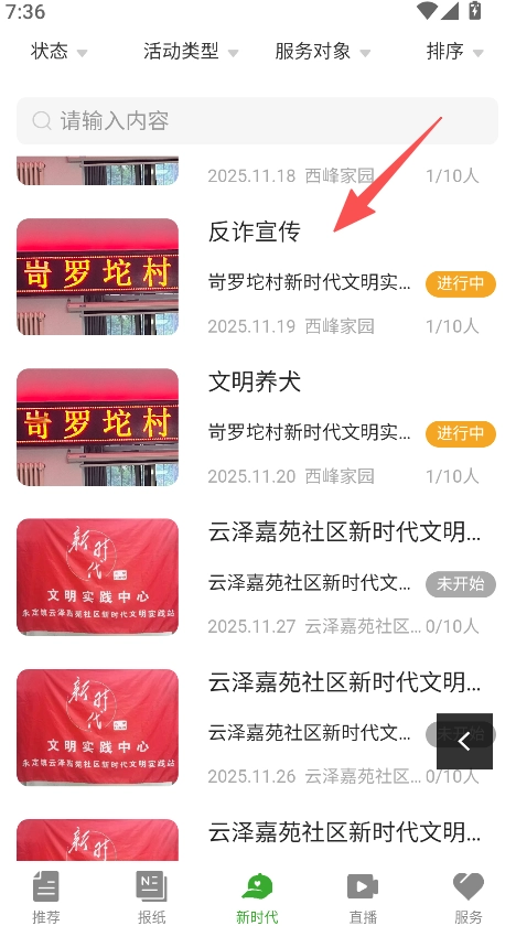 该平台具备志愿服务功能,用户能够浏览反诈宣传等各类志愿活动并进行报名,从而参与到本地的文明实践当中,整体功能十分实用。