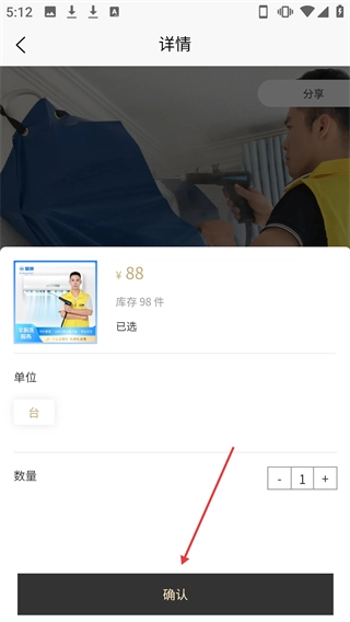 在数量选择窗口确定好数量后,点击【确认】按钮,就能完成把该服务添加到购物车的操作。