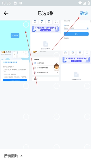 在选图页面,当你选好图片后,点击右上角的【确定】按钮,就能进入文档编辑页面了。