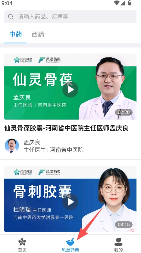 打开问问风湿后进入风湿药典页面,再从中选择中药或者西药分类。