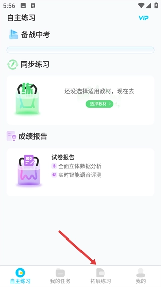 进入【慧听说】的自主练习页面后,记得点击底部的【拓展练习】选项呀。