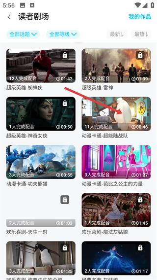 在读者剧场页面,选择【动漫卡通-超能陆战队】这个免费素材吧。