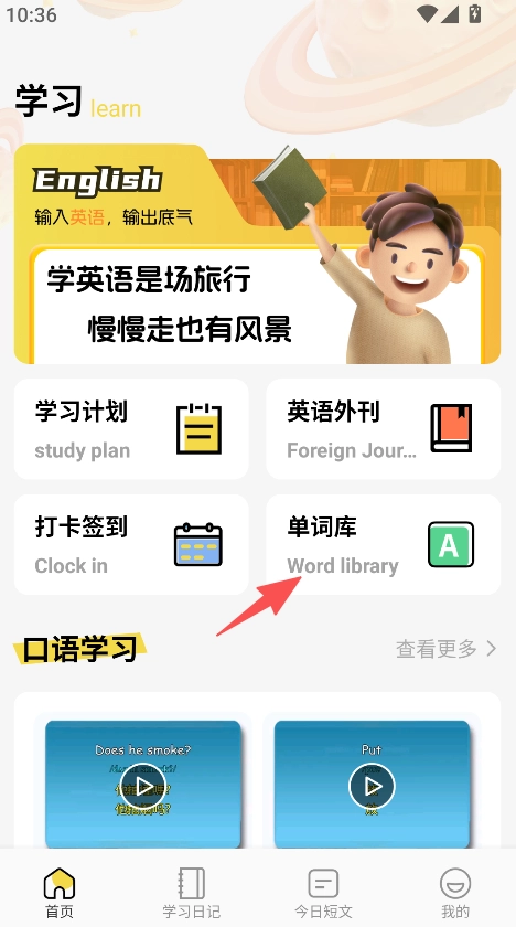 打开软件进入首页,选择单词库功能。