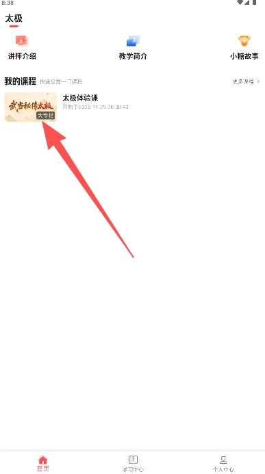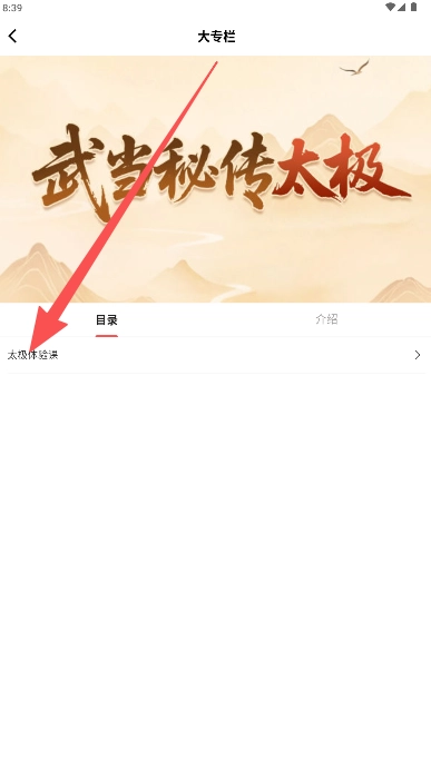 在大专栏目录页选择“太极体验课”章节点击开始。