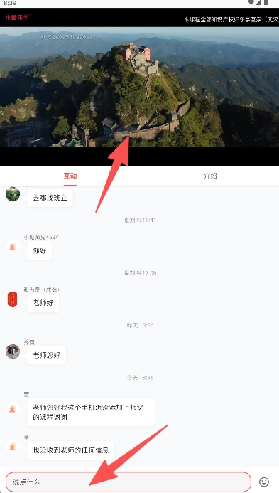 在观看教学视频时,可在互动区点击输入框,发表评论或留言,与老师进行互动。