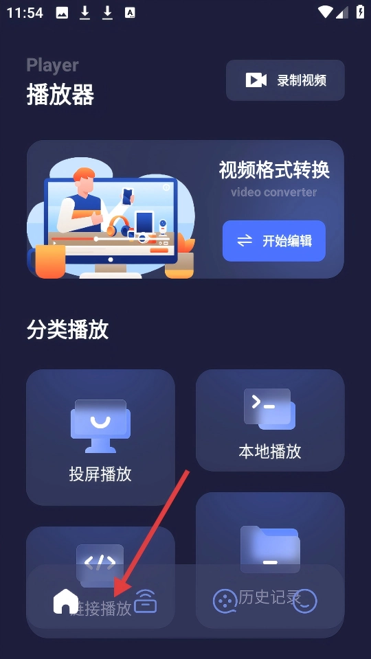 在播放器页面,点击【连接播放】选项,进入链接播放页面。