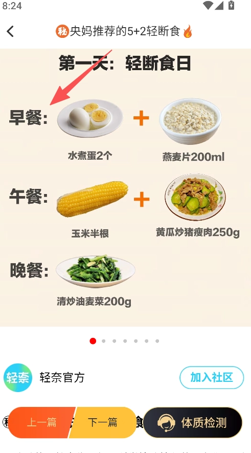 《轻奈》是一款专注于健康饮食的软件,设有四季食谱专区,不仅包含专业营养师1对1定制的饮食方案,还提供契合四季变化的专属食谱,详细展示减脂餐、轻断食食谱(涵盖三餐具体规划),并标注食谱的浏览数据。此外,软件支持用户加入社区交流,进行体质检测,能满足用户获取和参考健康饮食、减脂饮食方案并执行的需求。
