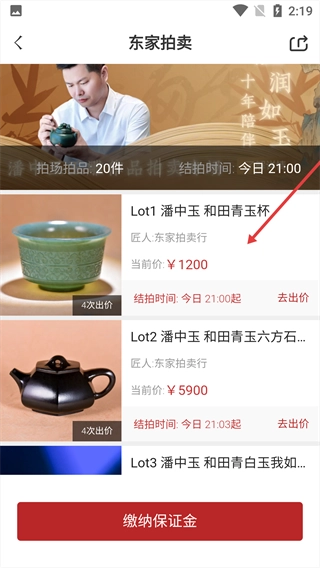进入拍品列表页面,选择目标拍品。