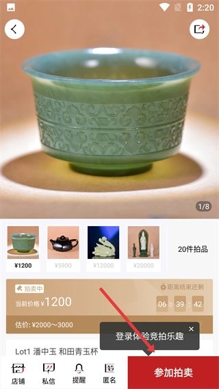 点击底部【参加拍卖】按钮,开始竞拍流程。