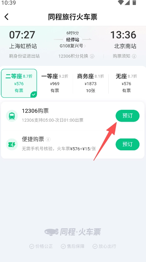 提供两种购票渠道,包含12306购票和便捷购票,满足不同的购票习惯与需求。