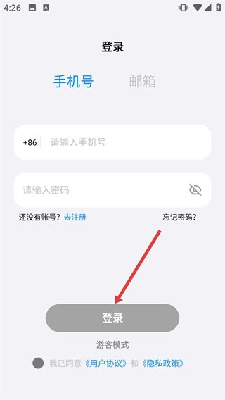 在登录页面,您可以选择在【手机号】输入框中填写号码,接着在【密码】输入框中填写密码,然后勾选【我已同意《用户协议》和《隐私政策》】,最后点击登录按钮即可完成登录操作。