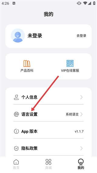 在“我的”页面里,找到“语言设置”这一选项,它目前显示的是“系统语言”,点击这个选项就能进入语言选择界面。