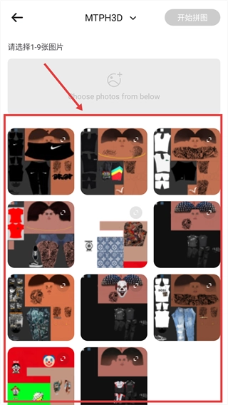 在图片列表中选择1-9张目标图片。