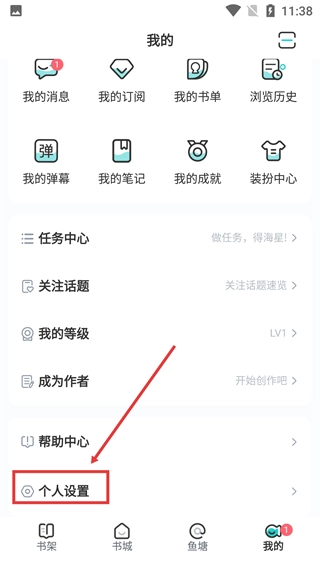 进入【我的】页面后,点击【个人设置】选项,即可进入设置页面。