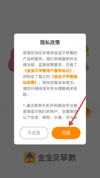 打开,在隐私政策弹窗点击【同意】。