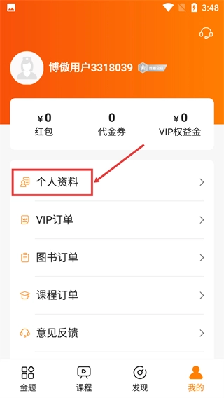 进入【我的】页面后,找到并点击【个人资料】选项。
