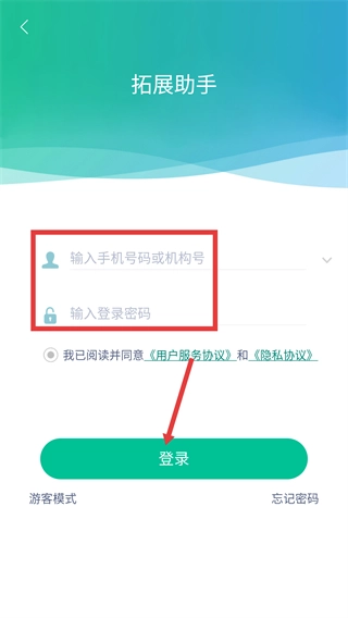 在登录页面,输入手机号码或机构号以及登录密码,勾选相关协议后点击【登录】按钮,即可完成账号登录流程。