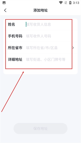 请依次填写【姓名】【手机号码】【所在省市】【详细地址】等信息,完成收货地址的录入。