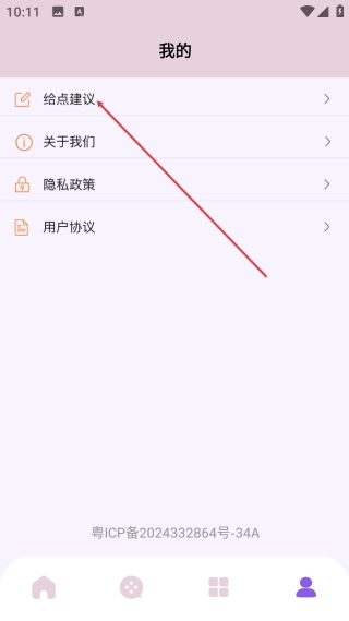 在我的页面,点击【给点建议】选项,即可进入建议反馈的操作界面。