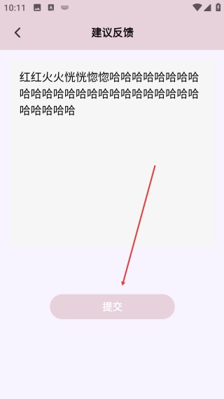 输入内容后,点击页面底部的【提交】按钮,就能完成建议反馈的提交操作。