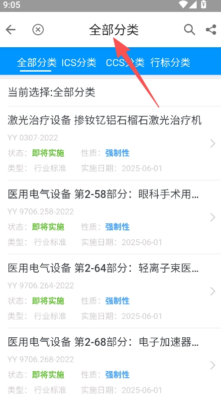 分类板块划分清晰,包含全部分类及ICS分类等,支持直接选择对应分类,能减少标准筛选的操作步骤。