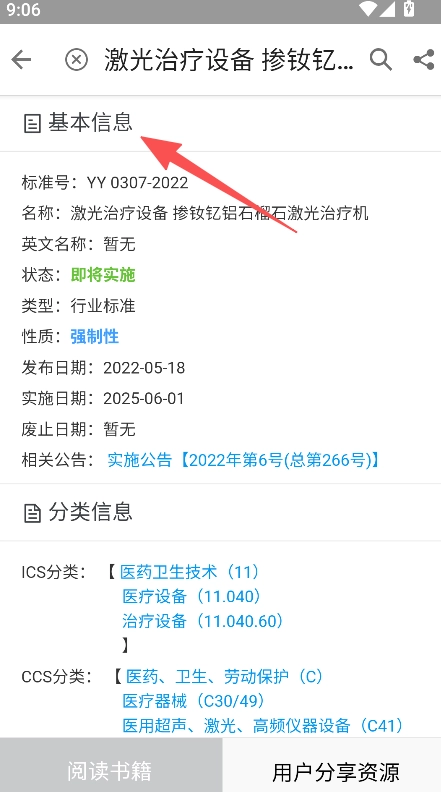 点击选中的标准,查看其基本信息。